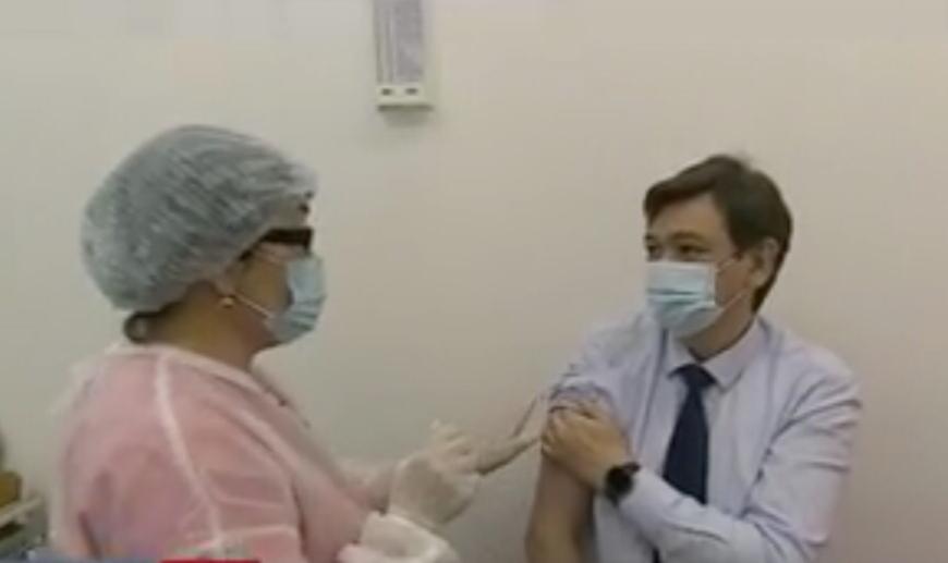 На вопрос врача о самочувствии после первой прививки оба чиновника ответили, что чувствуют себя хорошо.