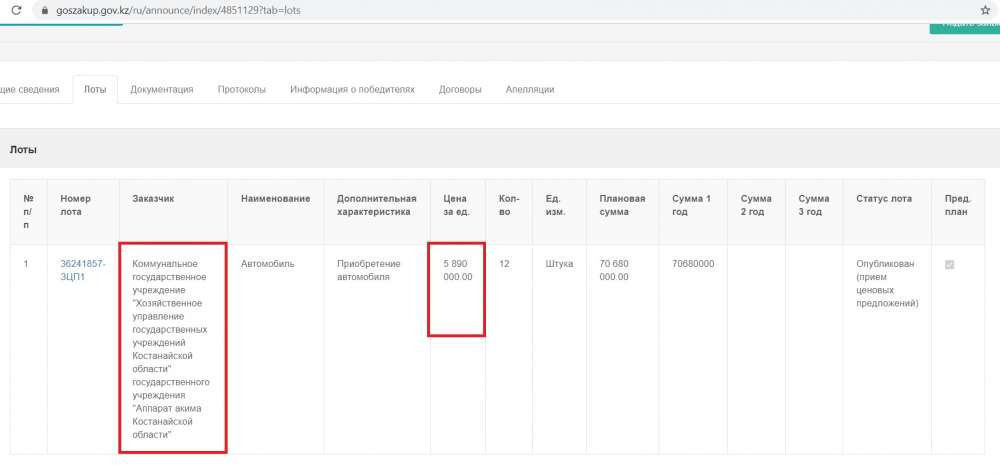 BaigeNews.kz. ХОЗУ акимата разместило на сайте госзакупок три лота: 12 автомобилей по