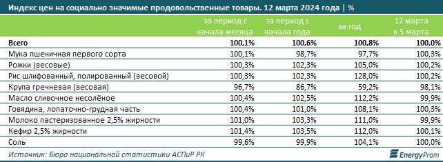 По состоянию на 12 марта текущего года в целом в стране цены на такие продукты выросли на 0,1% за месяц, на 0,6% с начала года и на 0,8% за год.
