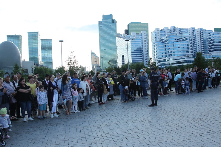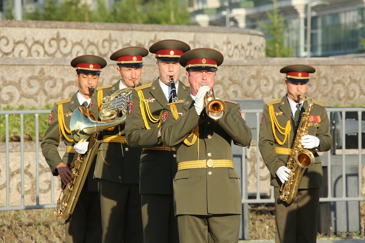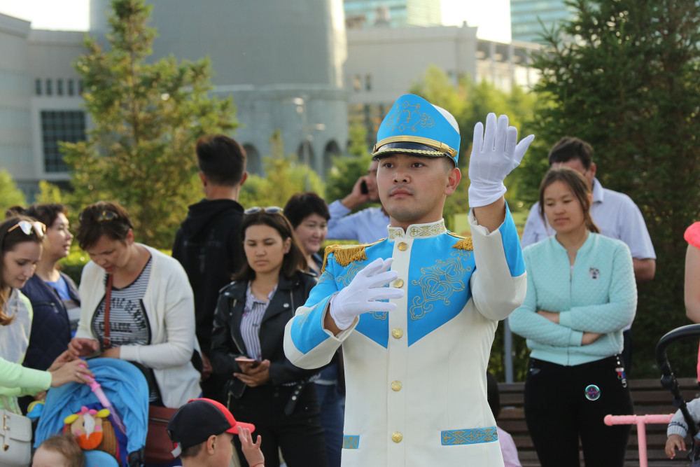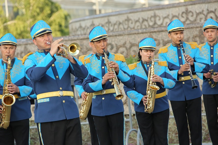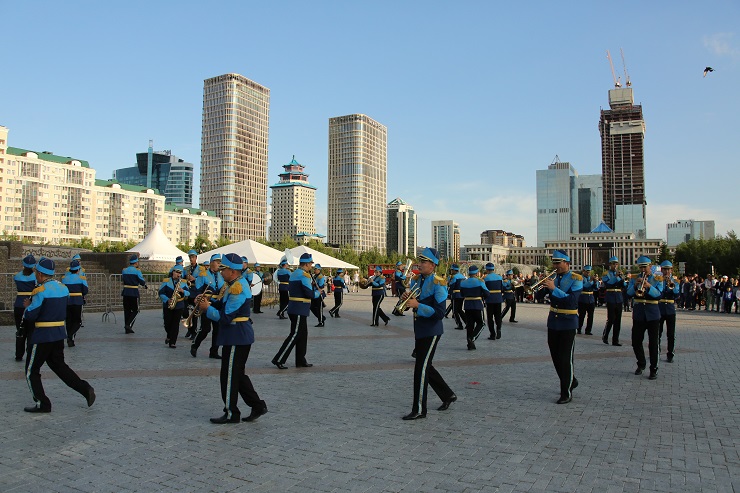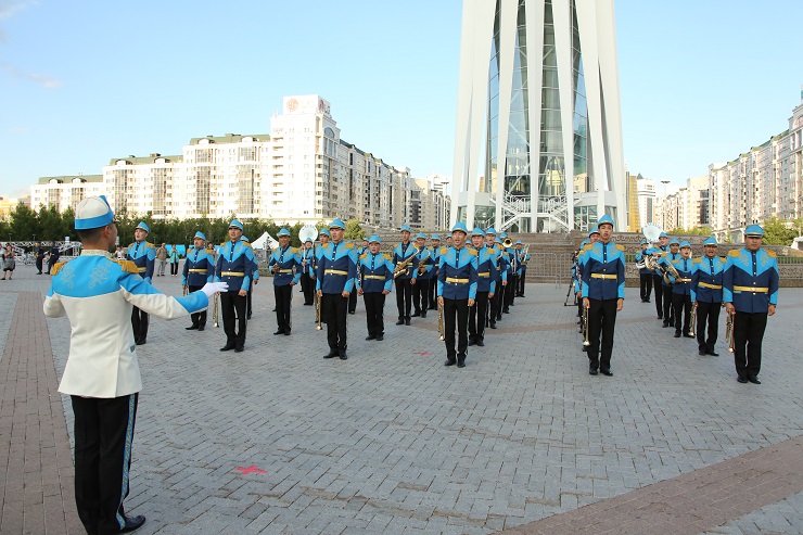 В это же время на площадях Концертного зала "Астана" и спортивного комплекса "Қазақстан" со своей программой выступали военные оркестры региональных командований Национальной гвардии РК.