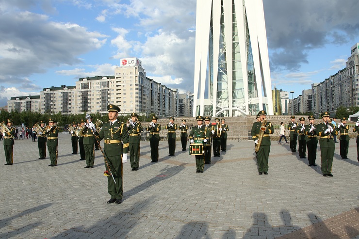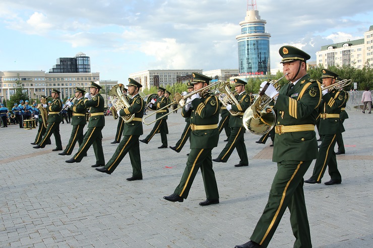В числе участников выступления на площади кроме казахстанских оркестров были представлены оркестр войск Национальной гвардии Российской Федерации и Народной вооруженной полиции Китайской Народной Республики.