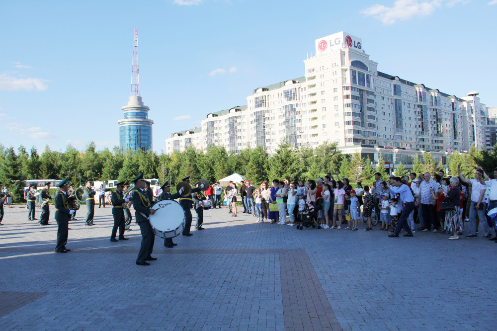 В это же время на площадях Концертного зала "Астана" и спортивного комплекса «Қазақстан» со своей программой выступали военные оркестры региональных командований Национальной гвардии РК.