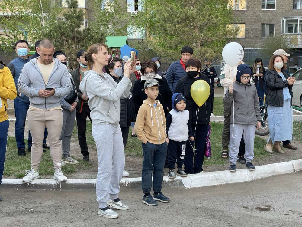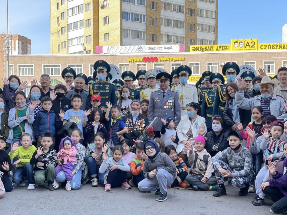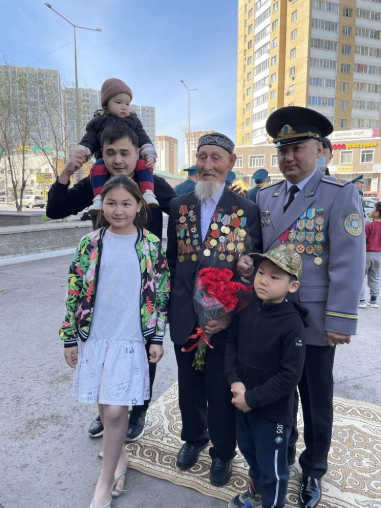 Поздравить Жакан-ата также собрались все его соседи. Взрослые и дети пожали руку ветерану и вручили ему подарки. Они хором поблагодарили его, сказав: "Спасибо деду за победу!".