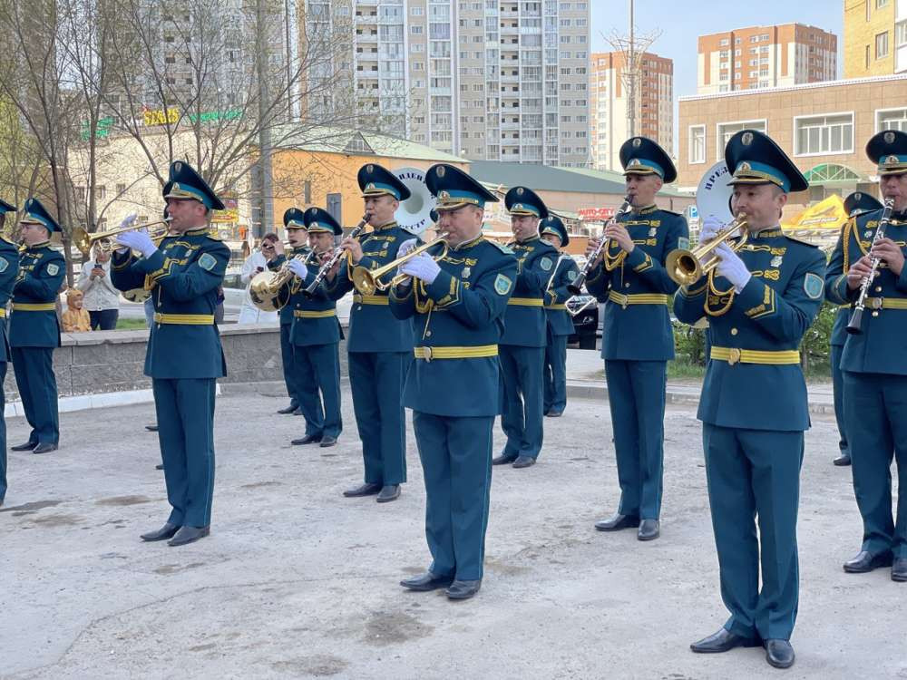 В свою очередь атмосферу парада Победы воссоздали военнослужащие почетного караула "Президентского полка "Айбын" Сил особого назначения", а также Президентский оркестр СГО РК.
