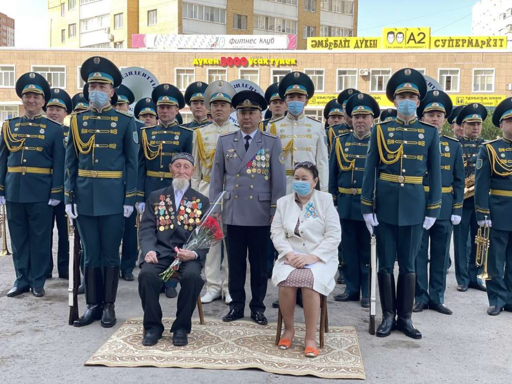 В Нур-Султане военнослужащие Службы государственной охраны Казахстана торжественно поздравили ветерана ВОВ Жакана Сейсебаева, передает