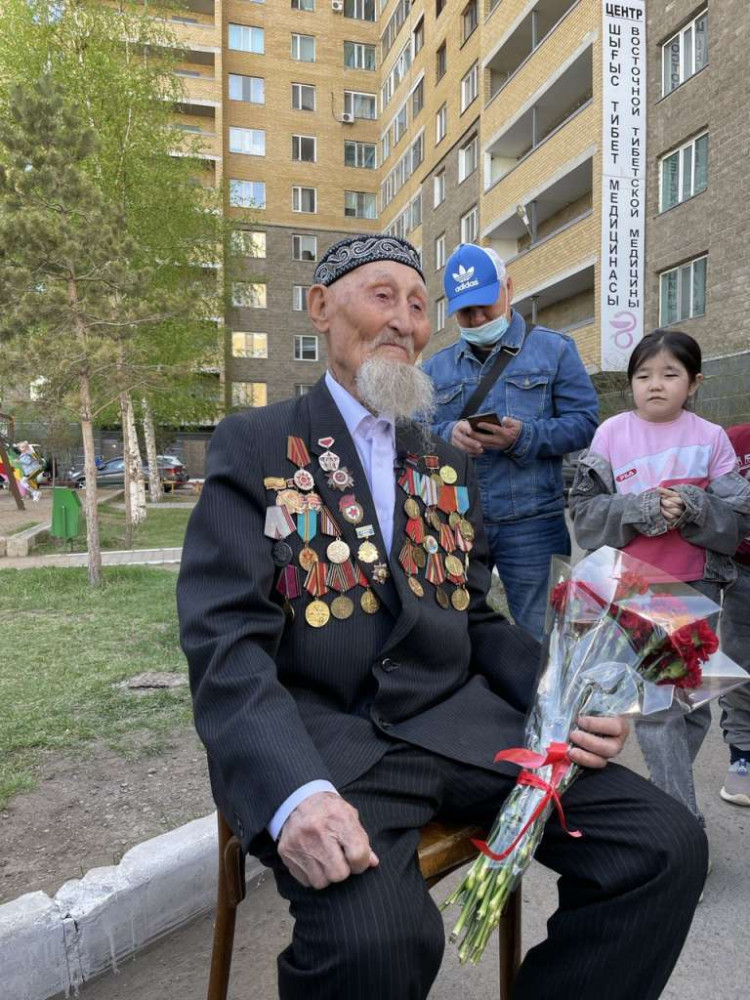 "Я был в Кенигсберге, когда нам сообщили, что война закончилась и мы победили. В этот момент мы радовались и плакали, обнимали друг-друга и поздравляли. Помню, что стреляли салют прям из автомата. Мы были благодарны, что остались в живых и вернемся к родным. Я прошел три фронта: в Германии, Корее и Японии. Сейчас я чувствую себя хорошо. Нашей молодежи хотел бы пожелать открытого неба над головой, быть здоровыми и счастливыми. Пусть мирное время длится веками", – поздравил казахстанцев Жакан Сейсебаев