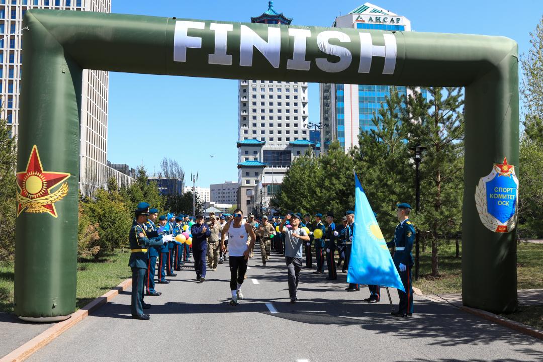 Прибыв в столицу по карагандинской трассе и проследовав по проспекту Абылайхана, улицам Сарайшык и Туркестан, спортсмен финишировал у административного здания Министерства обороны, где его встретили бурными овациями.