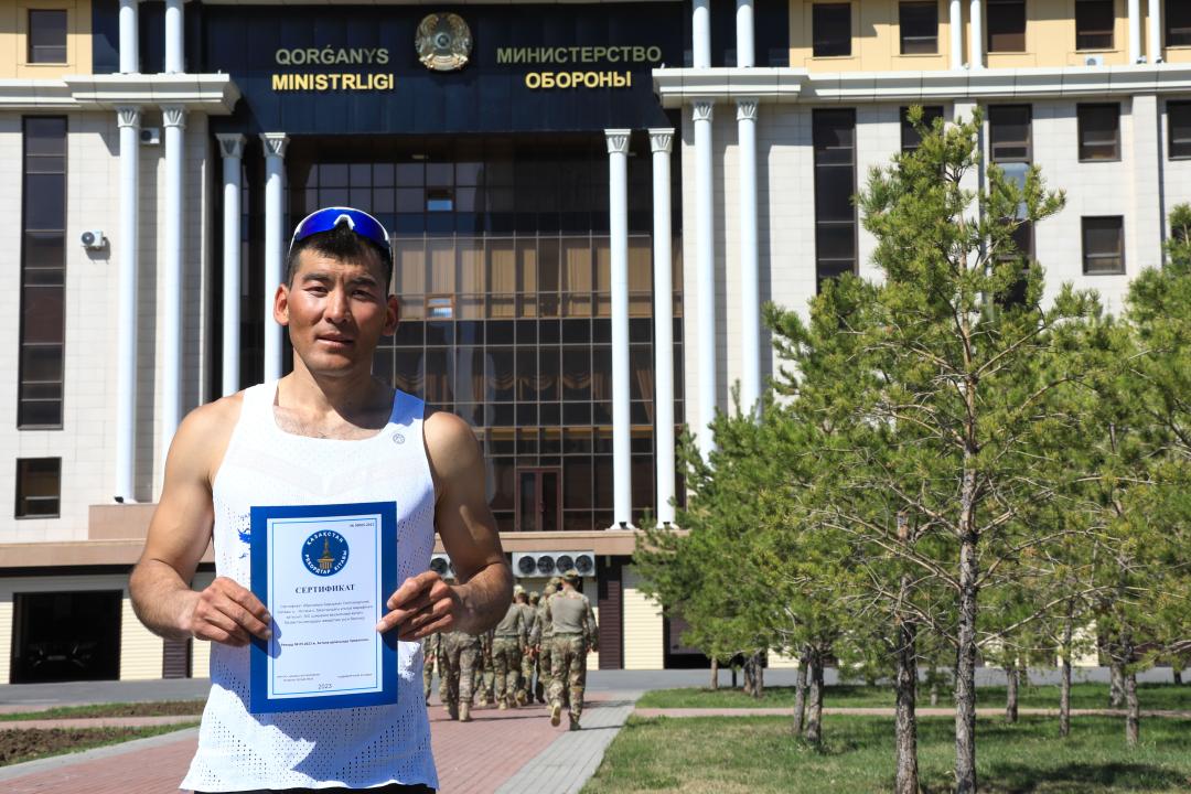 С выдающимся спортивным достижением Бауыржана Абдыхаима от имени министра обороны поздравил его заместитель генерал-лейтенант Султан Камалетдинов. Как отметили организаторы мероприятия, подобный забег в таких временных рамках в Казахстане совершен впервые.