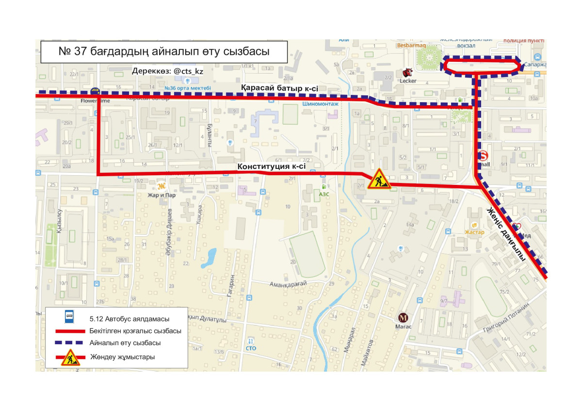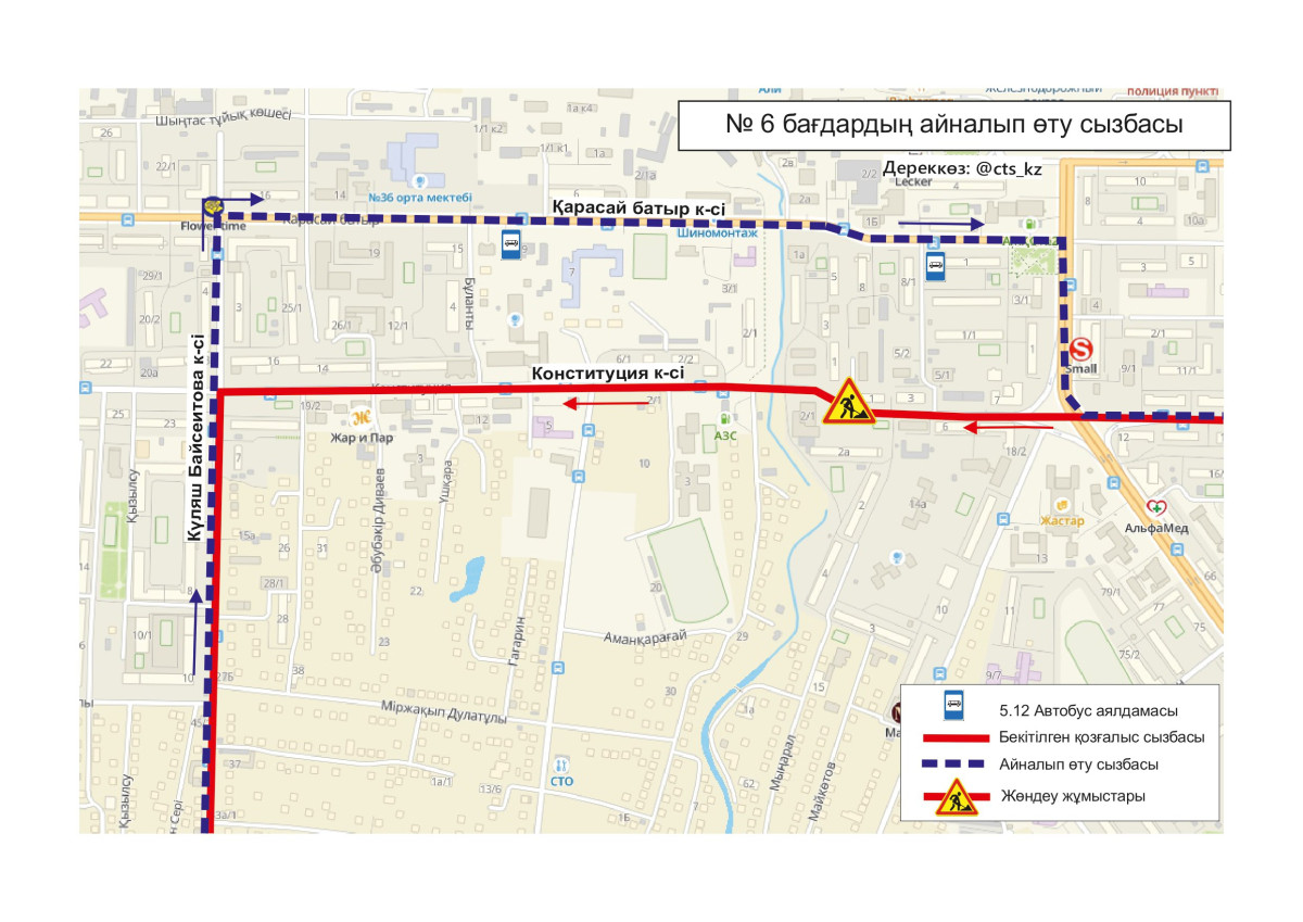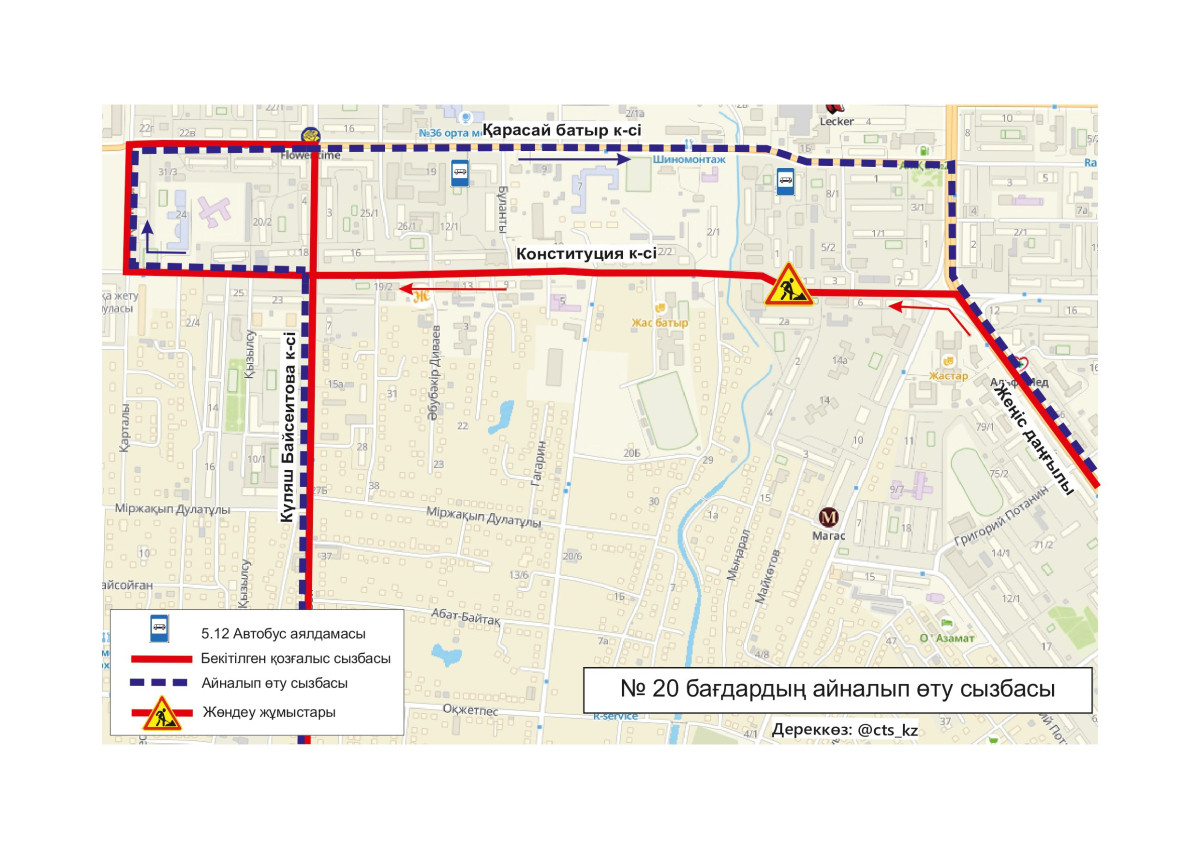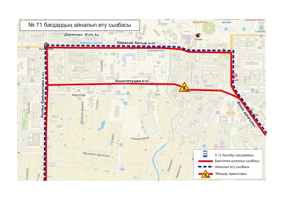 "До завершения ремонтных работ, временно изменены схемы движения маршрутов №№ 5, 5А, 6, 20, 37, 71, 72, 81. Просим заранее планировать свой маршрут", - сообщили в ТОО "City Transportation Systems".