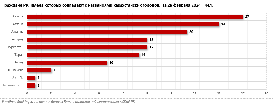 На 29 февраля текущего года в стране были зарегистрированы 24 человека по имени Казахстан.