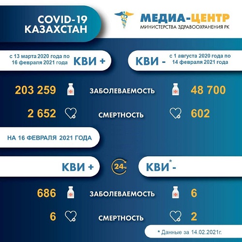 По данным Министерства здравоохранения, 14 февраля зарегистрировано шесть летальных исходов при подтвержденном COVID-19 и два - при отрицательном ПЦР-тесте.