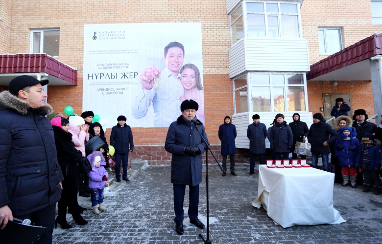 Ключи от квартир вручил аким Астаны Бахыт Султанов и председатель правления АО "ИО "Казахстанская Ипотечная Компания" Адиль Мухамеджанов. Жилье построили в рамках реализации государственной программы жилищного строительства "Нұрлы жер" по направлению "Арендное жилье с выкупом". Арендные квартиры получили многодетные семьи, инвалиды 1-2 группы и семьи, воспитывающие детей-инвалидов, сироты, оставшиеся без попечительства родителей и другие граждане, относящиеся к социально уязвимым слоям населения.