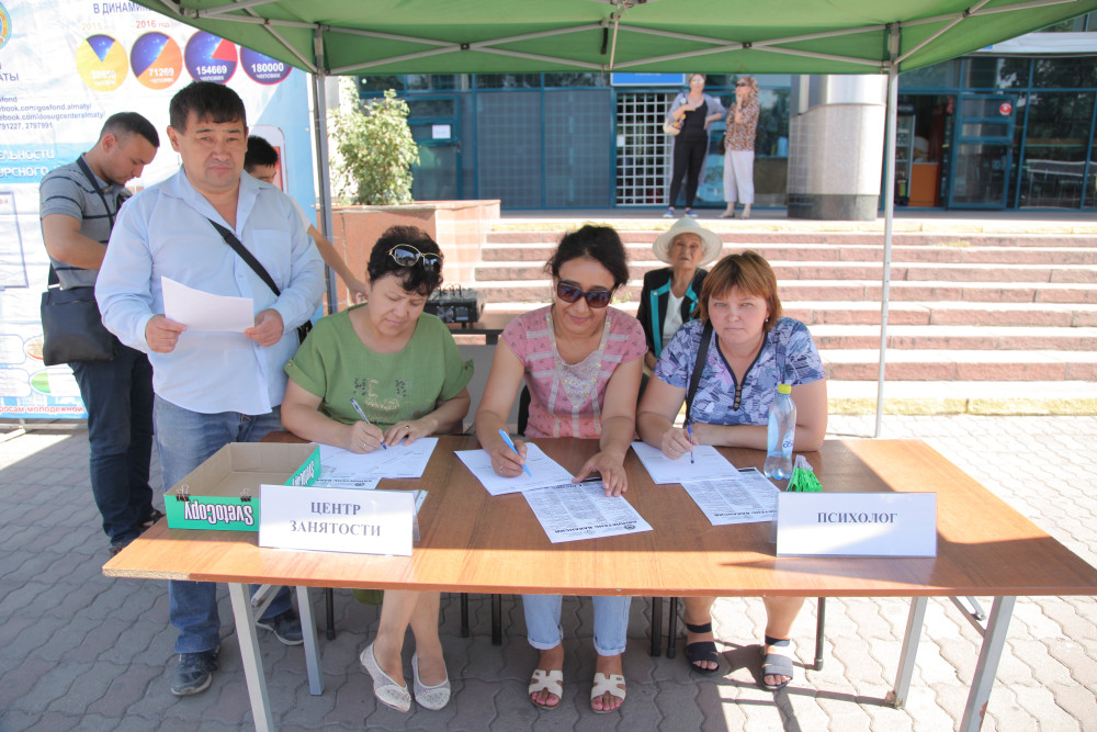 Обычно подобные акции организаторы стараются проводить в многолюдных местах. Так в этом году передвижной центр занятости побывал на Зеленом базаре, в районе центральной мечети, возле Седьмой горбольницы, в Айнабулаке и возле Никольского рынка. Далее он направится в Бостандыкский и Алатауский районы.