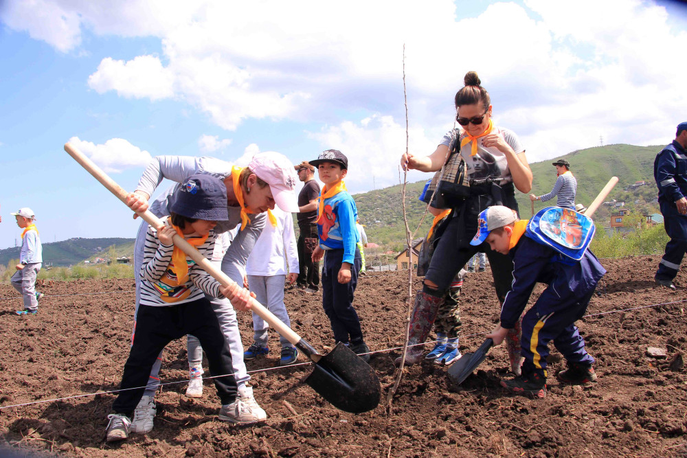 В омоложении яблоневого сада в этот день приняли участие агрономы, горожане, журналисты и даже дети из детского сада Алматы.