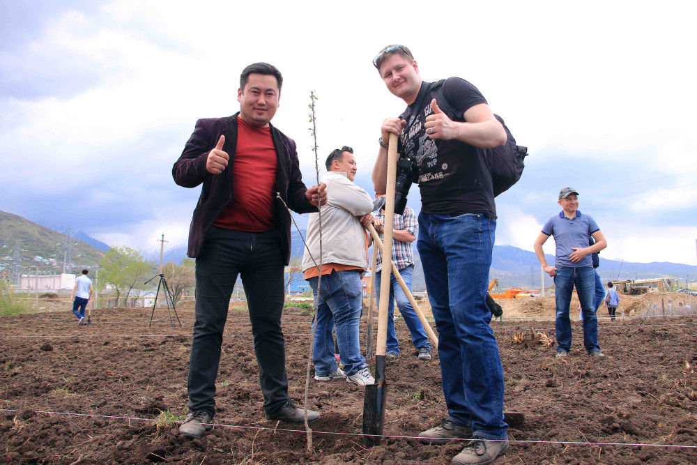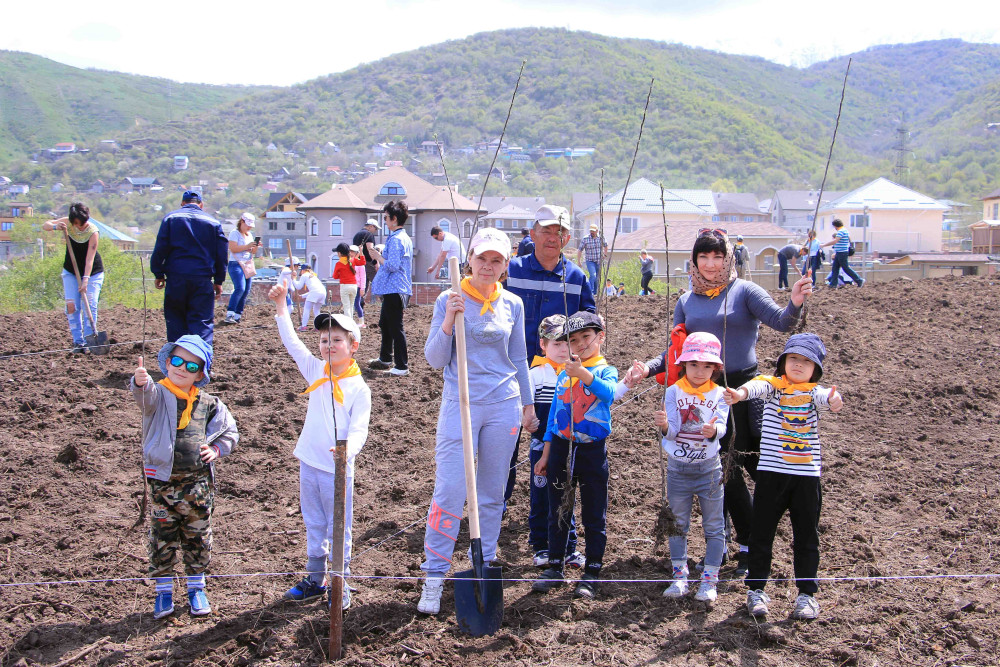 В омоложении яблоневого сада в этот день приняли участие агрономы, горожане, журналисты и даже дети из детского сада Алматы.
