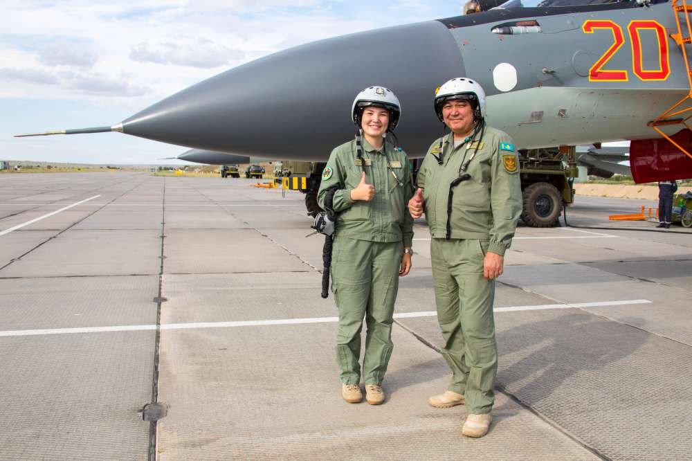 "Впервые в истории Вооруженных сил Республики Казахстан самостоятельно в качестве командира экипажа на боевом самолете Су-30СМ вылетела женщина. Необходимо отметить хорошую подготовку, ее стремление быть на высоте, выполнять задачи по охране воздушных рубежей нашего государства в качестве летчика-истребителя. Она доказала, что женщины в боевой авиации наравне с мужчинами могут выполнять сложные задачи", − сказал Орманбетов.