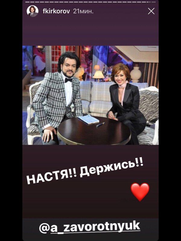 Многие звезды пишут в своих аккаунтах соцсетях слова поддержки актрисе. К примеру, Анастасию поддержал Филипп Киркоров.