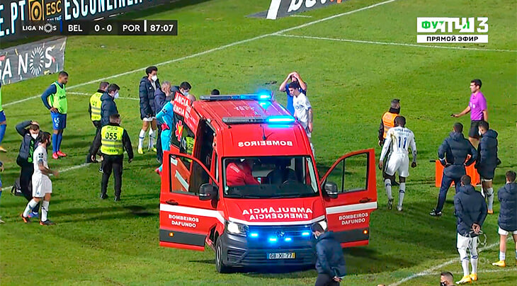 Игрок "Порту" потерял сознание, его увезли на машине скорой помощи, которая выехала прямо на футбольное поле.