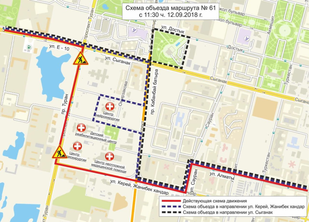 12 сентября в связи с ремонтными работами по проспекту Туран, на участке от улицы Сыганак до Керей и Жанибек хандары, движение автобусного сообщения будет ограничено, передаёт корреспондент BNews.kz со ссылкой на официальный сайт столичного акимата.