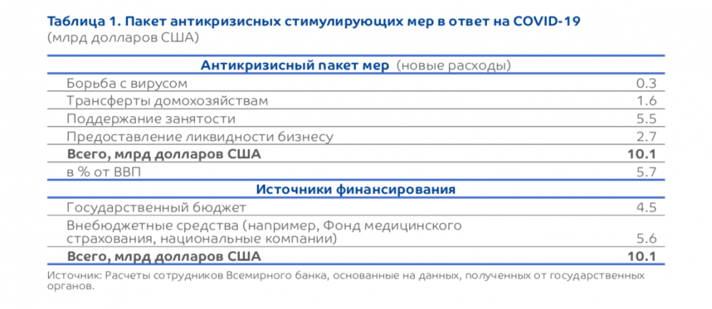 "Налоговые каникулы и отсрочки, увеличение расходов на антикризисные меры и снижение доходов бюджета, вероятно, приведут к резкому увеличению дефицита бюджета в 2020 году. Учитывая беспрецедентную ситуацию и потребность в бюджетной поддержке, среднесрочные целевые показатели временно не будут исполняться, что задержит запланированные действия по консолидации", - говорится в докладе.