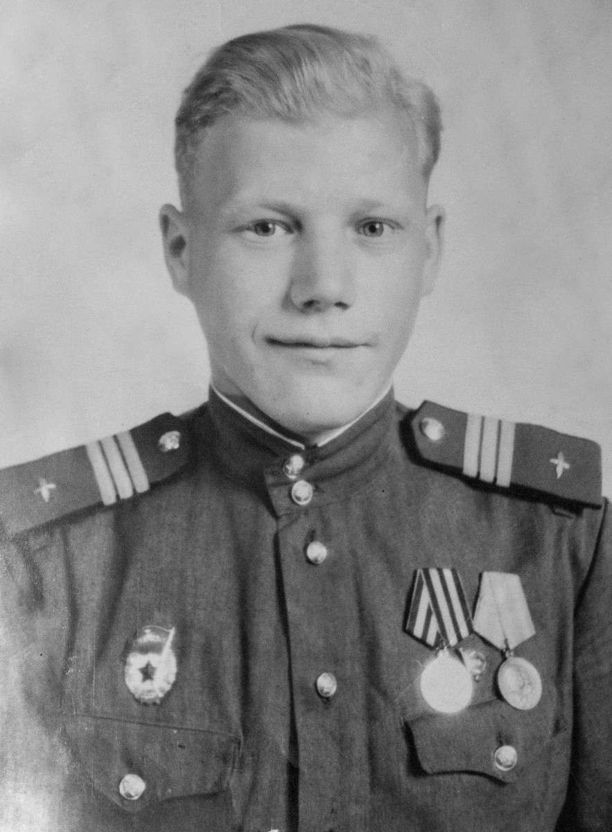 Нас Сергей Николаевич встретил в выглаженной рубашке и сам прошел в зал, дочь Людмила помогла отцу надеть пиджак, увешанный медалями, и достала альбом с фотографиями. На одном из снимков он еще совсем мальчишка, погоны не держатся на плечах.