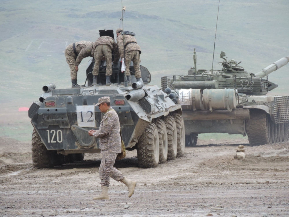На полигоне "Матыбулак" солдаты отрабатывают практические действия мотострелковых, танковых, разведывательных подразделений, оснащённых танками.