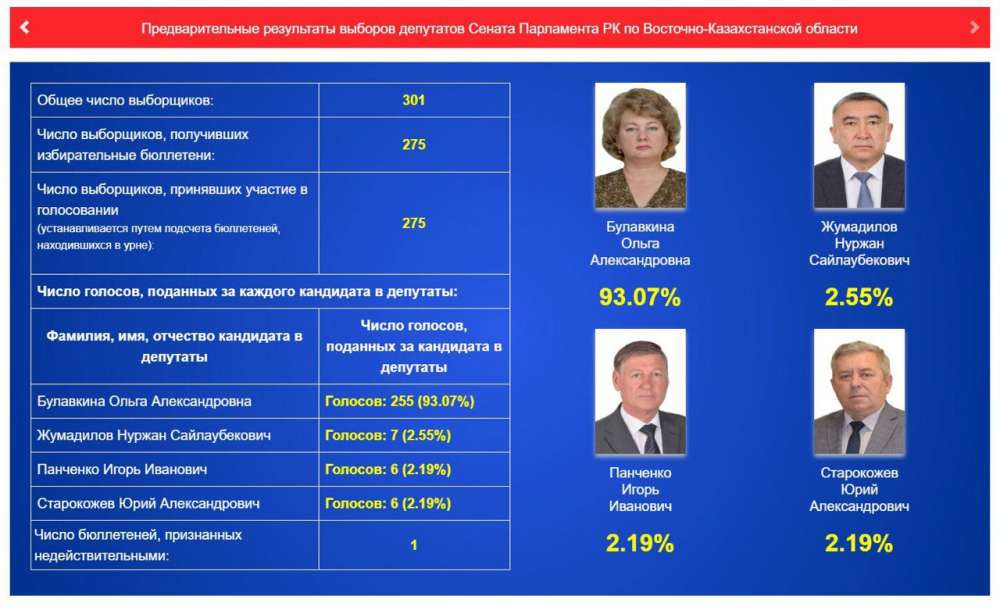 В ВКО, по предварительным данным, лидирует Ольга Булавкина.