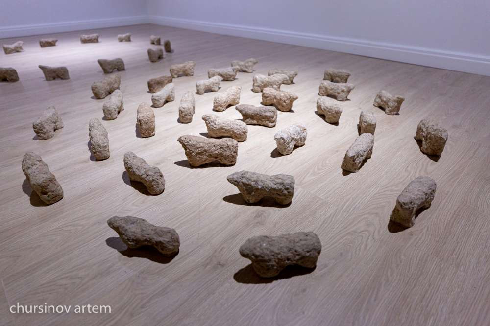 "Я всегда вдохновляюсь искусством западного Казахстана, а именно Мангыстауского региона — это большая удивительная школа и архитектуры, и пластической формы. В апреле я ездила в Актау. Меня поразило обилие камня, объемных памятников, которые остались там с давних времен. Их мягкость и фактурность я пыталась сохранить в своих работах и передать мое ощущение", — делится Жанна Нугербек.