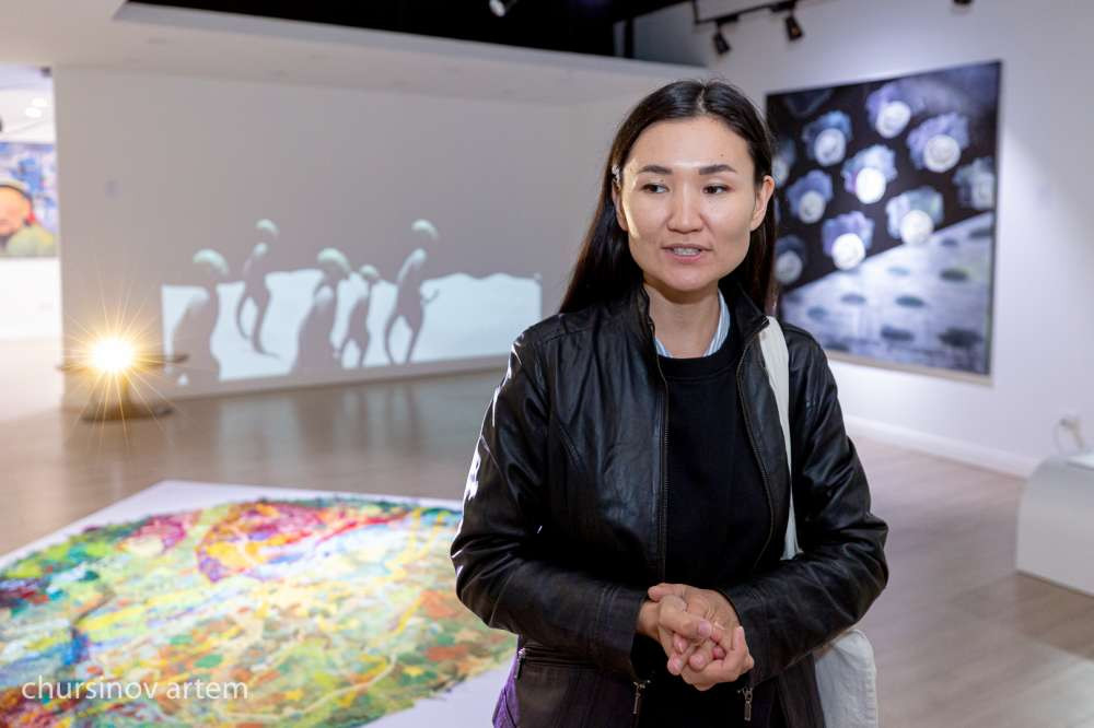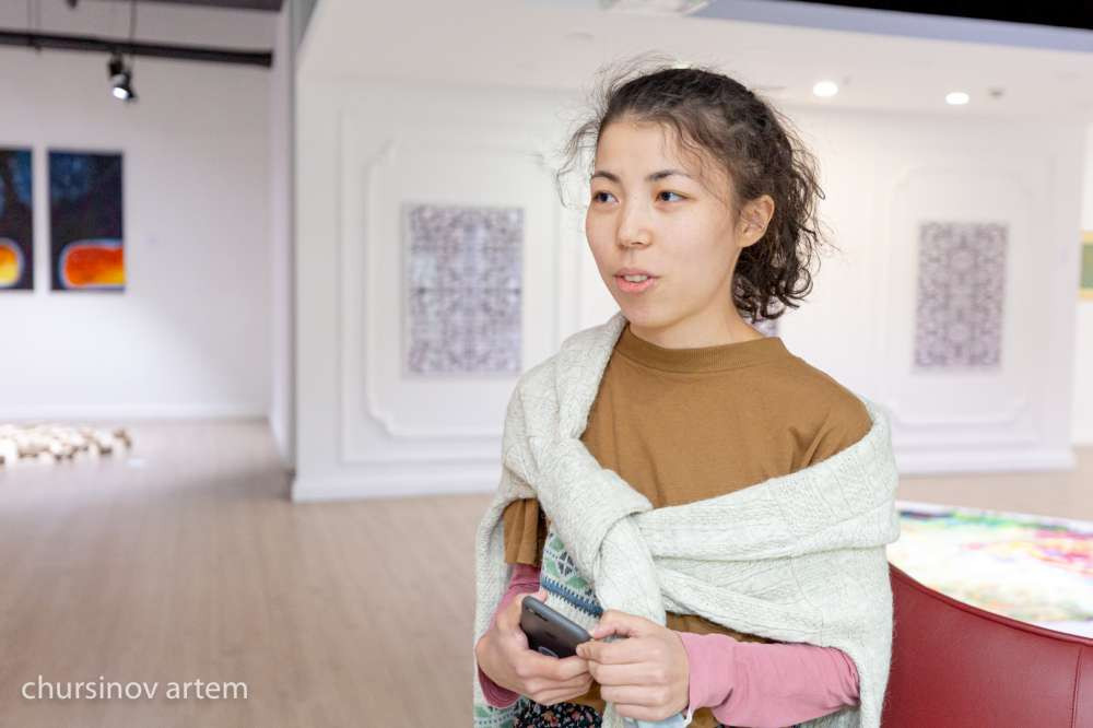 О своей работе, а также о нескольких работах других художников на выставке рассказала и Айдана Кулахметова.