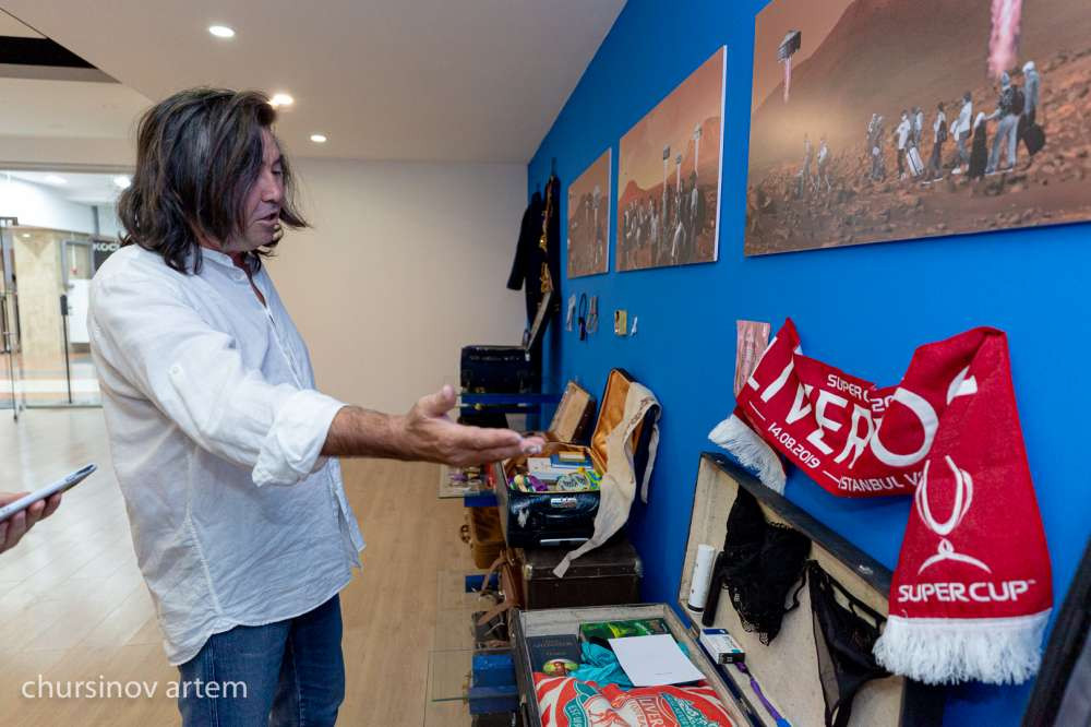 "Человек всегда пребывает в иллюзиях. Он совершенно не думает о реальных условиях, которые его ждут там. Только полет на сверхскоростях с чудовищными перегрузками займет год полета до Марса. База не будет на поверхности Марса, она будет под грунтом. И когда я дал людям задание, представить, что если бы они стали первопроходцами, что бы они взяли с собой. Я объяснил это так — в чемодан мы берем свои привязанности, слабости, ценности — и все это в виде предметов", — рассказывает художник.