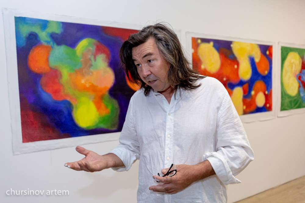 Как рассказала Айгерим Мажитхан, в выставке приняли участие художники из Казахстана, Киргизии, Украины, России, Швейцарии и Италии. Есть на нашей выставки и совсем молодые, и уже состоявшиеся художники. Здесь можно увидеть разное восприятие космоса их глазами.