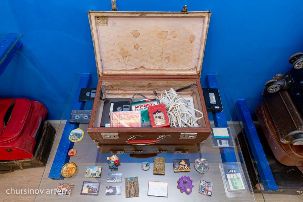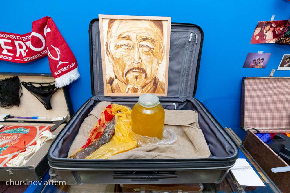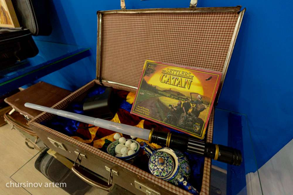 "Она, как и ее родители, любит чай пить, хорошо знает цену казахскому шоколаду, курт с собой берет, вот этот чайник — она не хочет с ним расставаться, и настольную игру. Это говорит о том, что эта девушка родилась где-то во второй половине 1990-х годов. И это время сказывается на содержании ее багажа", — говорит Асхат Ахмедьяров.