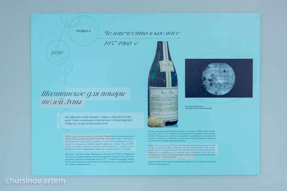 "В 1957 году, когда полетел первый спутник Земли, советский консул встречается с французским виноделом, который выпускает шампанское. И тот винодел говорит: "Да, технологии уже далеко дошли, но я не верю, что техника дойдет до того, чтобы можно было сфотографировать обратную сторону Луны", — рассказывает сотрудница Русского дома в Нур-Султане.