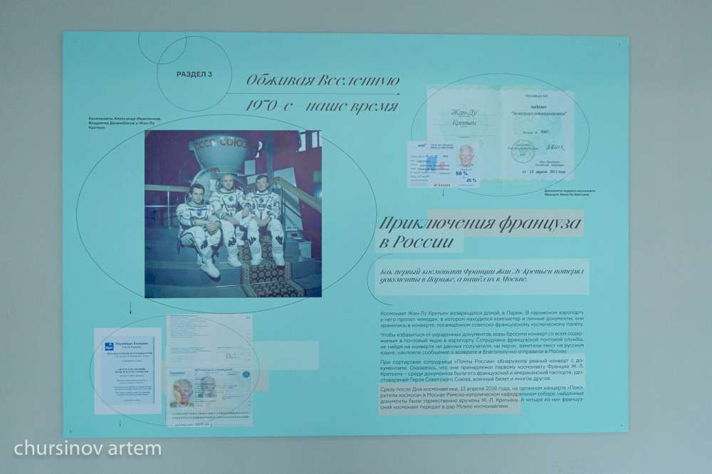 Первая выставка, организованная в преддверии 30-летия независимости Казахстана галереей Platforma Project Room, носит название "Бортовой журнал" и объединяет 18 современных художников, размышляющих о том, что для них значит космос. Вторая выставка представлена Русским домом в Нур-Султане и называется "Московский музей космонавтики в деталях. Сторителлинг от лица экспонатов". Местом проведения выставок стал БЦ "Москва".