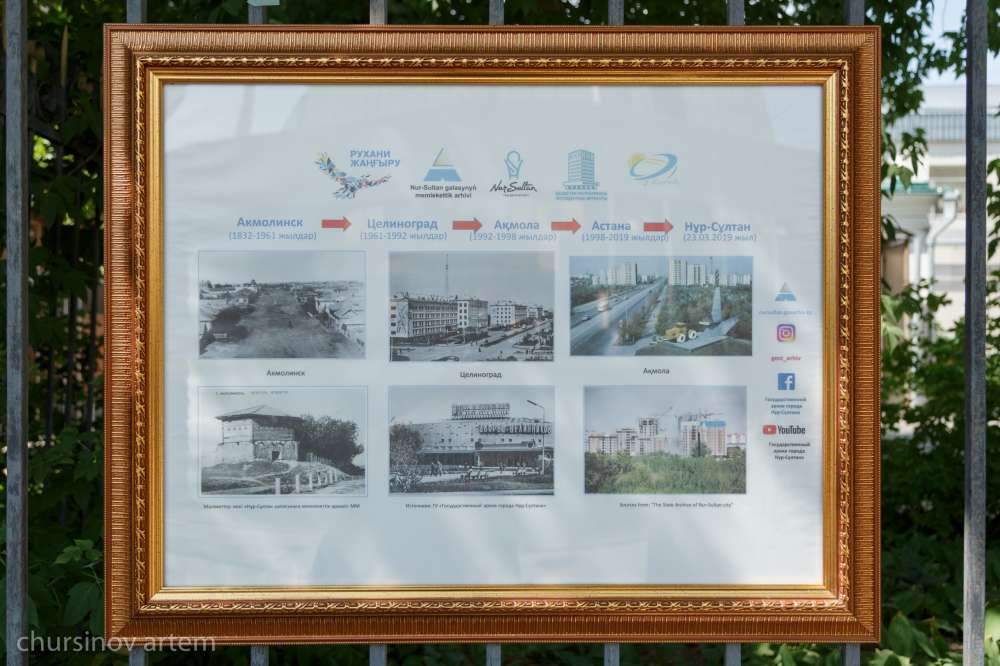 Зрители смогут увидеть около 100 фотографий и документов, которые были отобраны из Городского архива, Архива Президента РК, а также Библиотеки Первого Президента РК. Представленные фотографии охватывают весь исторический период, когда Астана (ныне Нур-Султан) была столицей Казахстана.