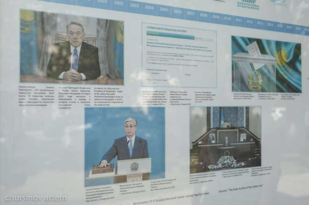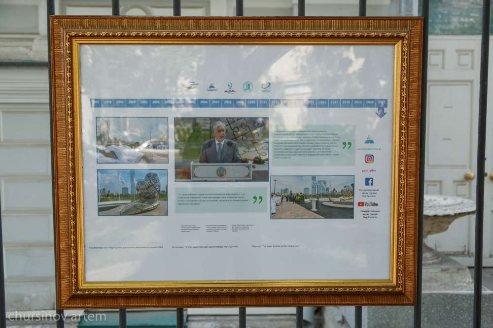 Изображения, отобранные для выставки, напоминают об основных этапах истории столицы через призму деятельности Нурсултана Назарбаева в его бытность Президентом Казахстана, и вплоть до избрания и вступления в должность второго президента РК Касым-Жомарта Токаева.