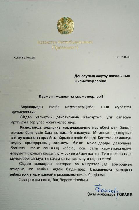 "Уважаемые медицинские работники! От всей души поздравляю вас всех с профессиональным праздником! Вы вносите большой вклад в укрепление здоровья людей и улучшение качества нации.