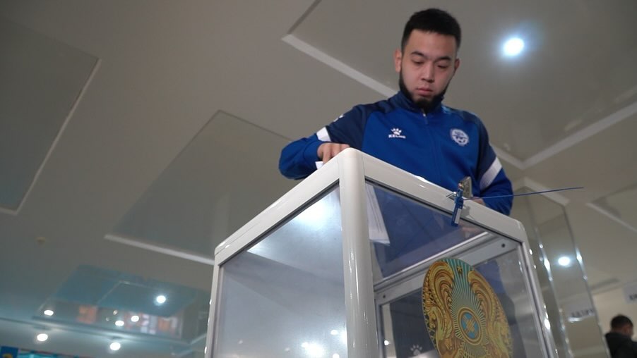 Стоит отметить, сюда же сегодня наведались несколько игроков возрожденного футбольного клуба "Иртыш". Парни не только опустили в урну бюллетени, но и поиграли перед зданием в мяч, чтобы порадовать жителей Павлодара.