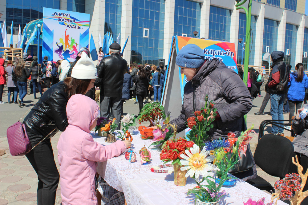 Различные выставки и ярмарки народных мастеров в День единства народа Казахстана расположились на нескольких площадках областного центра.