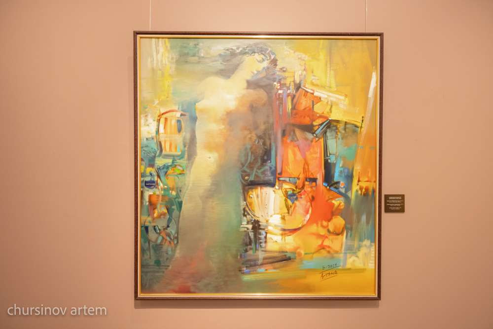 "Изображён на этой работе Коркыт ата. Он выступает не только в роли музыканта, но и в роли творца. Это человек, который создал замечательный инструмент – кобыз – и великую музыку. Здесь зритель может прочувствовать саму динамичность музыки при помощи ярких цветовых акцентов. Автор передаёт течение мелодии благодаря такому методу", – рассказала сотрудница музея.