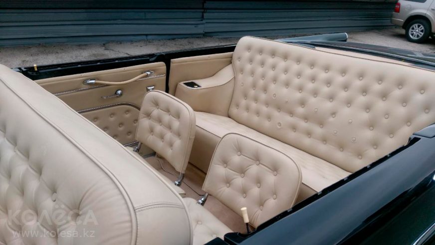 "Это кабриолет, но, судя по всему, не заводской. Оригинальных ГАЗ-13 с открытым верхом было выпущено не более двадцати, и они оснащались матерчатой крышей, которая поднималась при помощи гидравлики. У алматинской "Чайки" крыши нет совсем. Мотор у автомобиля тоже не оригинальный", - описывается в информации.