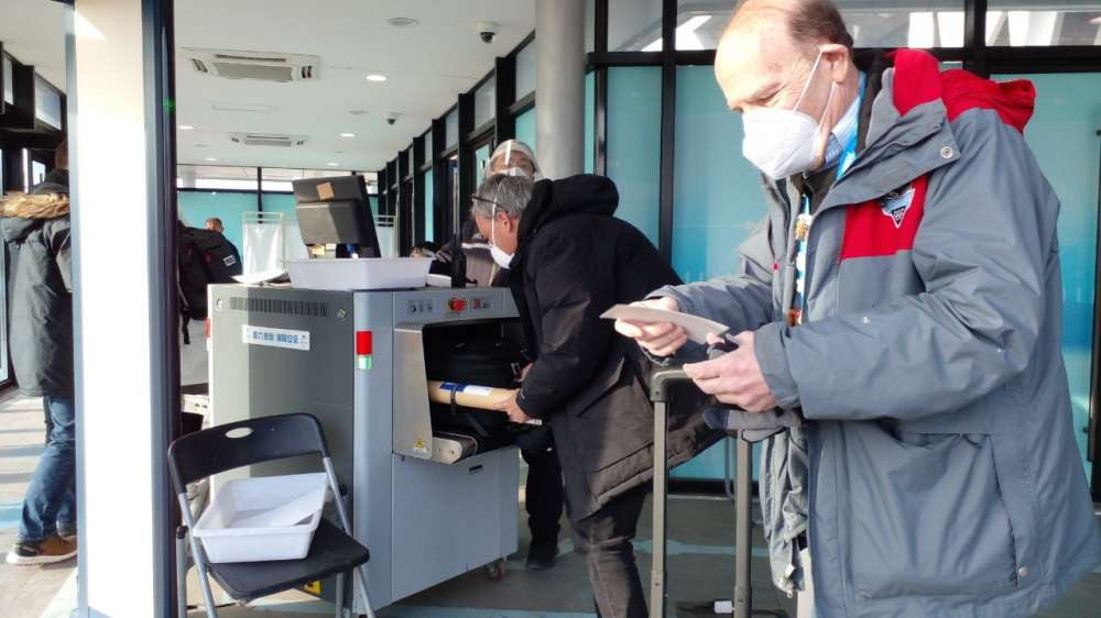 Досмотр двойной. Первый − на выходе из главного медиа-центра при посадке в автобусы до "Птичьего гнезда". Второй досмотр − по прибытии.