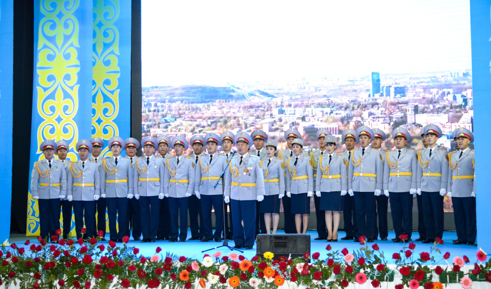 Была зачитана телеграмма Министра внутренних дел, генерал-полковника полиции Касымова Калмуханбета, правами министра награждены 24 сотрудника полиции, 210 сотрудников награждены нагрудным знаком «Қазақстан полициясына – 25 жыл».