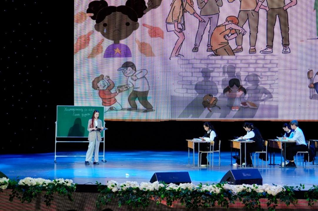 "С этого момента мы формируемся как личности. Сегодня каждый ребенок должен знать ответы на такие вопросы, как: "Где?", "Что я делаю?". В той сцене, которую мы поставили на конкурсе, мы затронули актуальные проблемы в обществе", - сказала участница Жанерке Куандыкова.