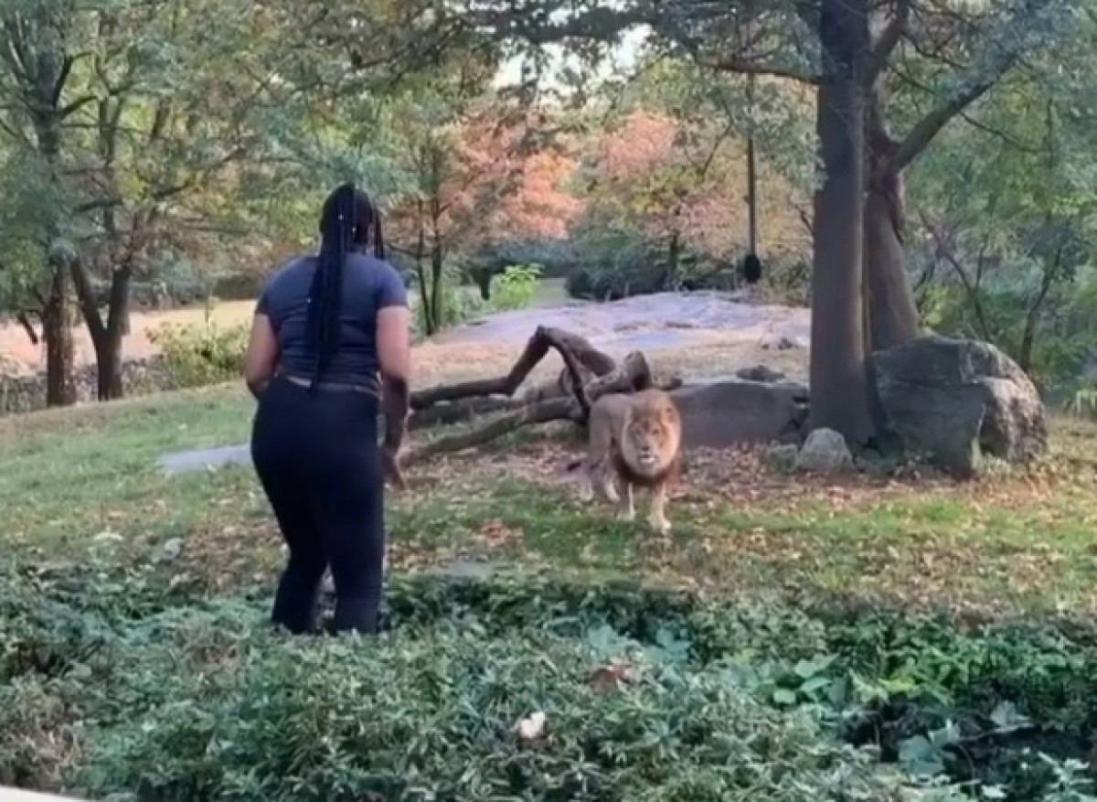 Снятое в зоопарке видео за короткое время стало вирусным в социальных сетях. На записи видно, как безрассудная посетительница перелезла через ограду вольера и начала размахивать руками и пританцовывать перед хищником. Лев смотрел на нее, даже не пытаясь напасть.