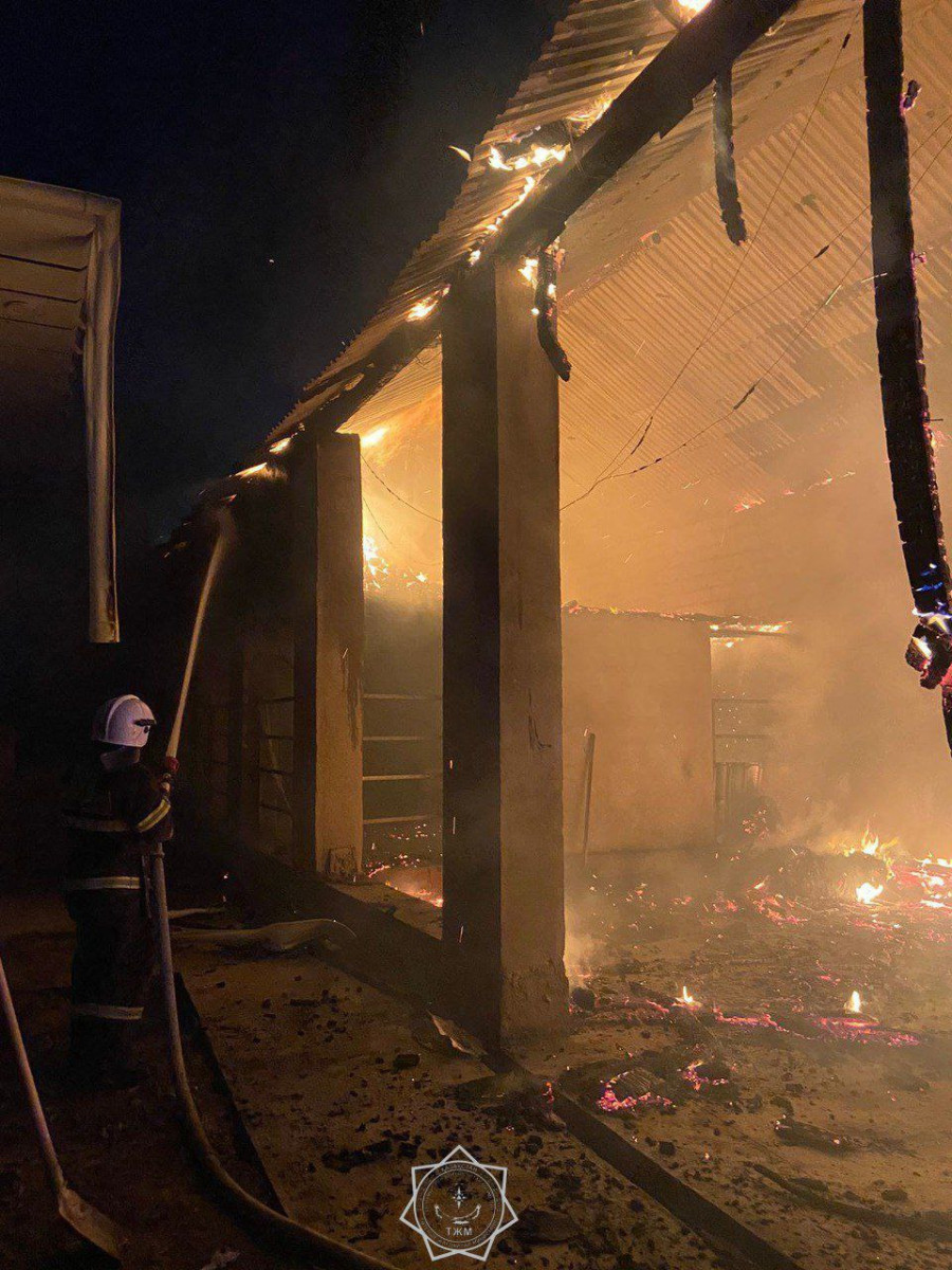 ЧП произошло на территории одного из частных жилых домов в селе Айтеке би. Загорелись три тонны складированного сена и хозпостройка.