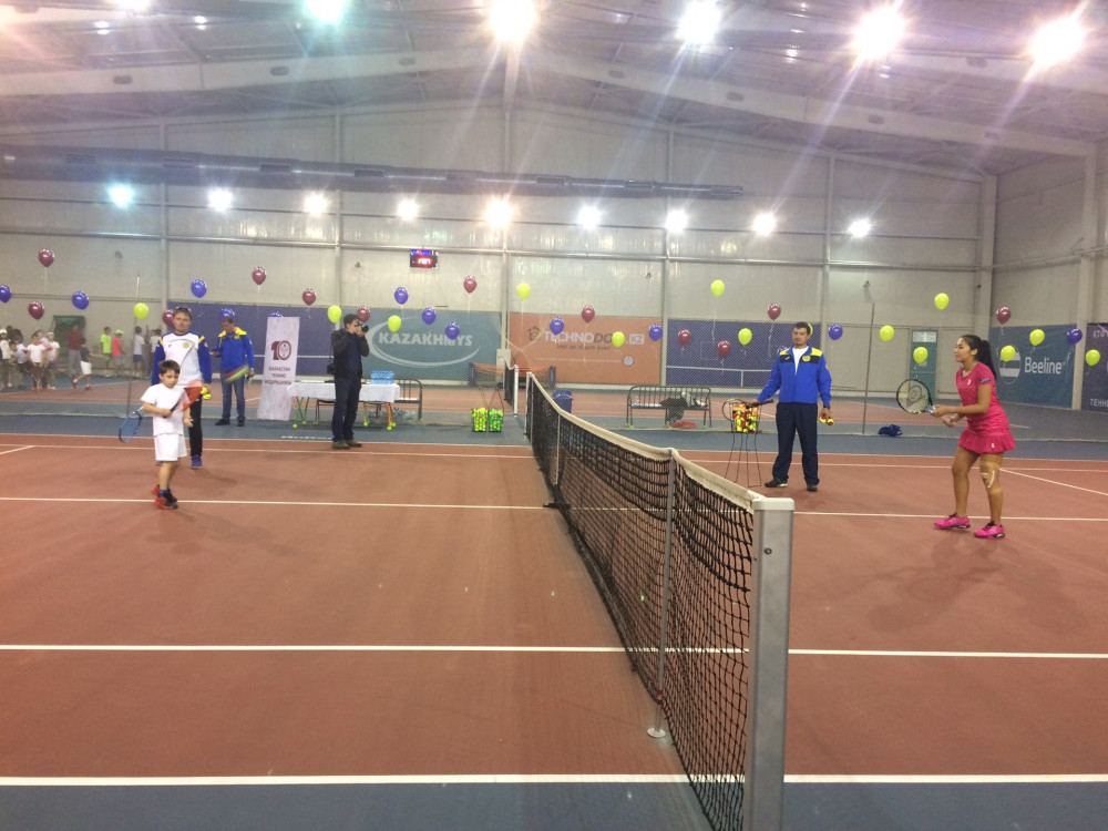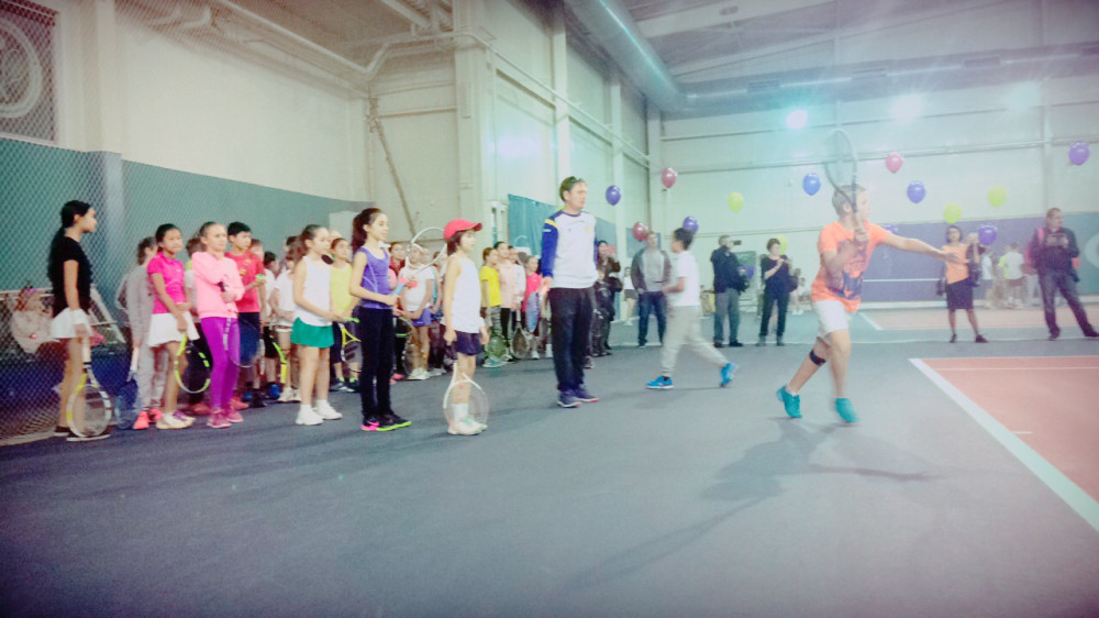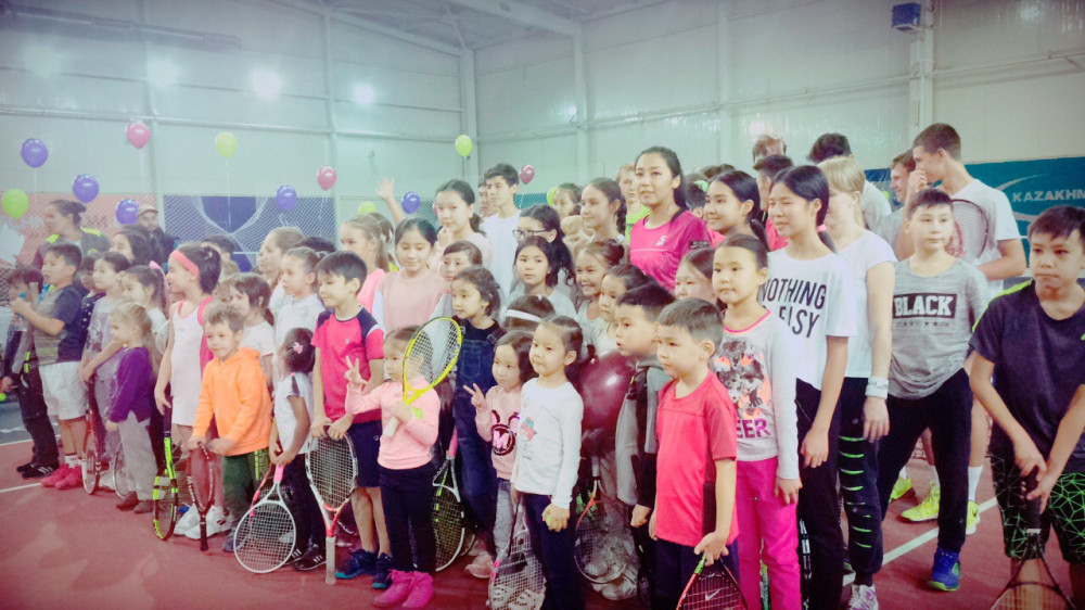 Сотни ребят разделились на три группы: младшую, среднюю и старшую, чтобы поучиться мастерству у лучшей казахстанской теннисистки.