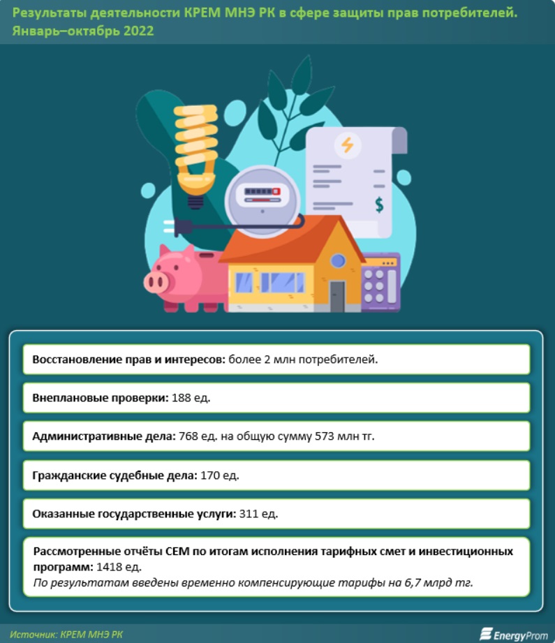 В результате деятельности КРЕМ МНЭ РК за десять месяцев были восстановлены права и интересы более двух миллионов потребителей, передаёт BaigeNews.kz со ссылкой на energyprom.kz.