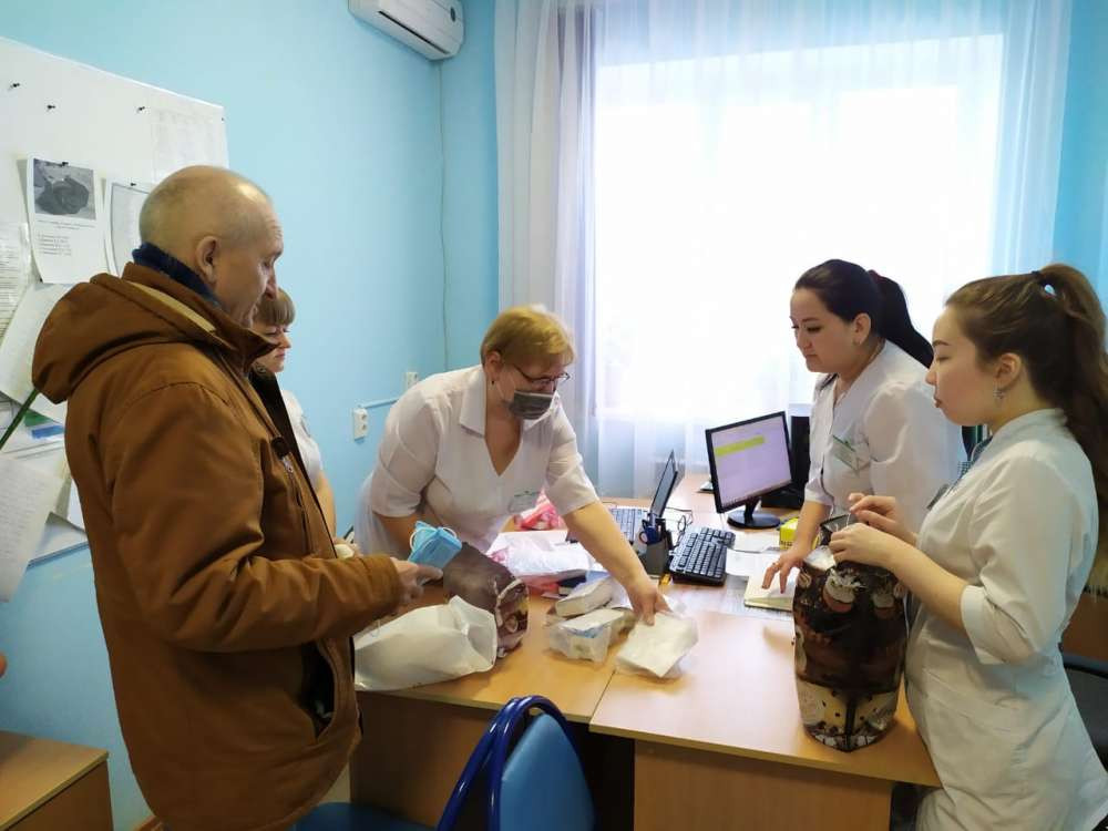 Практически ежедневно в 10 часов утра он направляется в поликлинику № 4 и поднимается в кабинет старшей медсестры. Здесь его приходу рады - во время ЧС и в сезон инфекций врачам дорога каждая минута, и ценна любая помощь. Все бесплатные лекарства расфасованы по пакетам. Каждому пациенту - свой "набор". Один Гумар Бектемиров может до обеда посетить 10 адресов, а если учесть работу других волонтёров, то в день они обходят 160 стариков. В поликлинике не нарадуются: своими силами могли бы посетить не больше 80 пациентов.