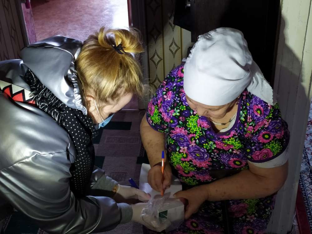 Волонтёр Гумар Бектемиров - самый возрастной помощник врачей. Ему самому 60 лет, работает юристом в областном молодёжном ресурсном центре. Говорит, поэтому молод душой и готов помогать другим. Зимой, например, чистил снег в домах стариков, а сейчас взялся за развозку пакетов с лекарствами.